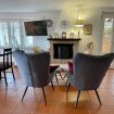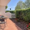 Casa Sara. Piano terra. Appartamento di 2 vani. mq 55. Ingresso dal porticato. Ingresso dal porticato, arredato (16mq) nell’ampia zona pranzo con angolo cottura (frigo/freezer, forno elettrico, microonde, lavastoviglie, 4 fornelli induzione), zona soggiorno con due poltrone, TV, Netflix, Wi-Fi. Scrivania, uscita al giardino recintato, camino, condizionatore. Camera con letto matrimoniale, condizionatore. Bagno con doccia/wc, lavatrice. Giardino su due lati (ca 45 mq).